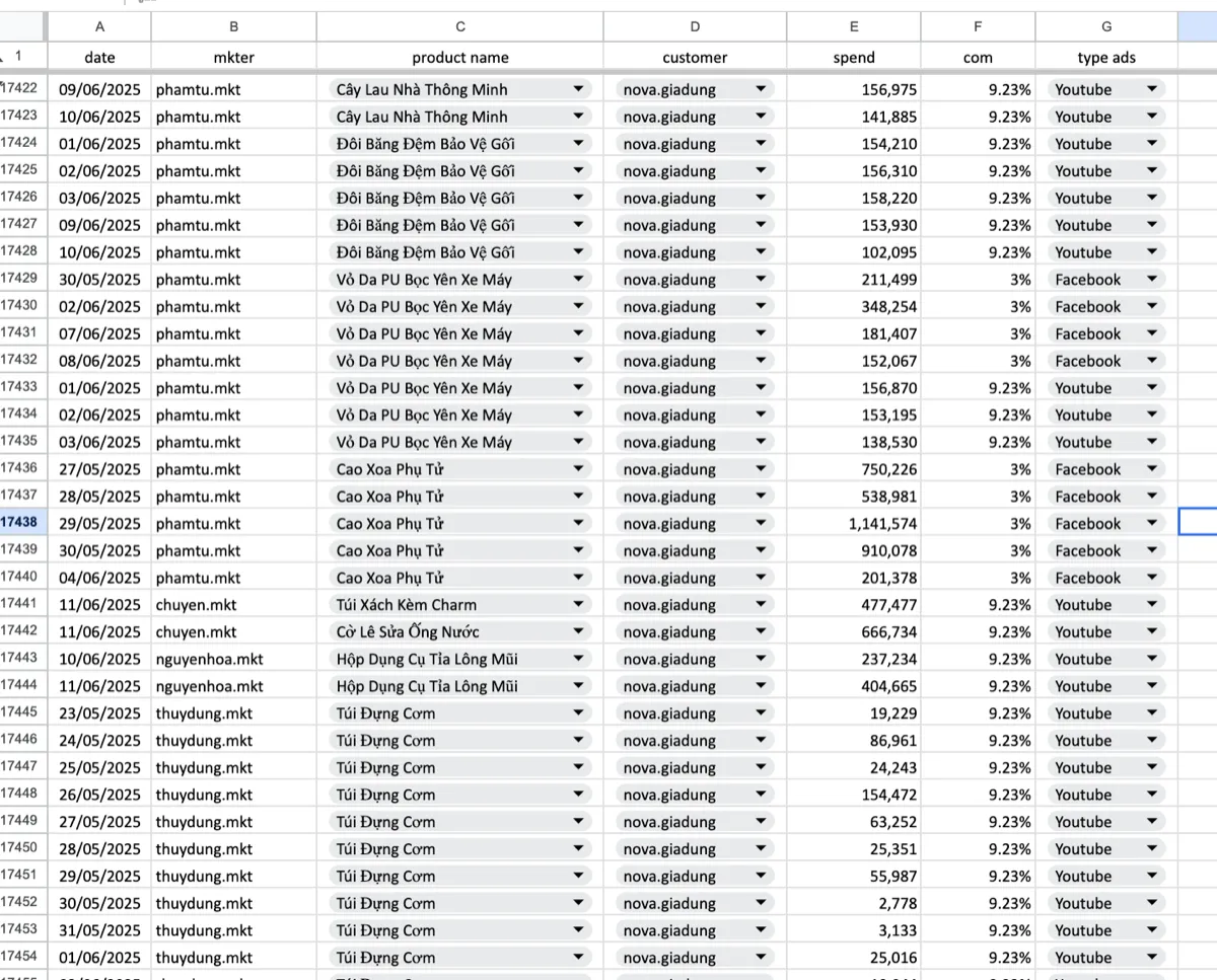 Mỗi ngày, các MKT phải ngồi copy/paste data từ Facebook Ads, Google Ads vào file Excel này, rồi tự đối chiếu với đơn từ store. Thiếu automation, dễ sai sót, và mất 2-3 giờ/người mỗi ngày.